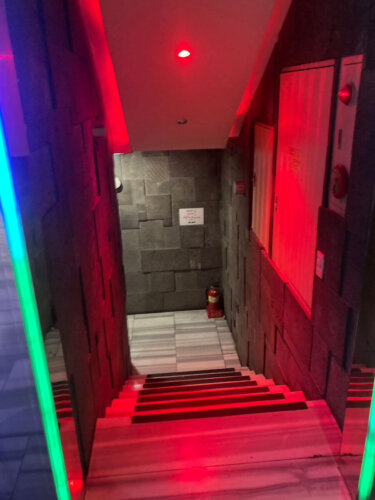 ※ムーディーな雰囲気漂う、赤い照明が印象的な階段