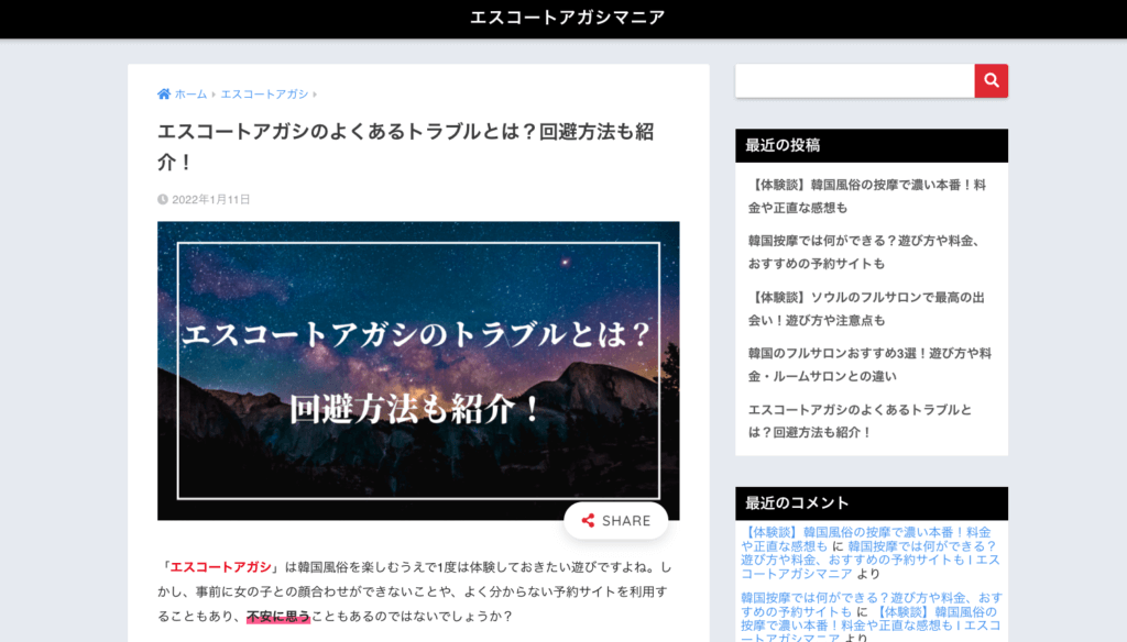 エスコートアガシを愛する韓国おじさん」はエスコートアガシについて深く知りたい読者におすすめのサイトだ。個人が運営しているブログなのだが、ただのブログと侮るなかれ。