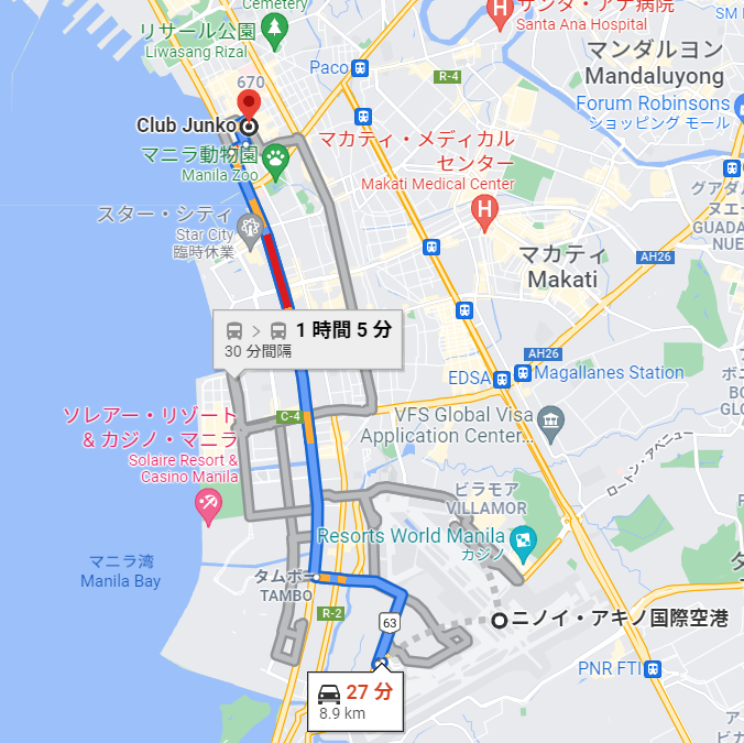 ※ニノイ・アキノ国際空港からKTV Room526までの経路。