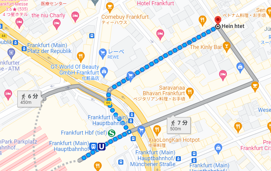 フランクフルト中央駅からは、徒歩5分ほどだ。